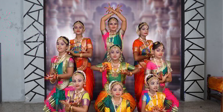 Join our Bharatanatyam classes for beginners, intermediates, and advanced dancers, both online and offline.
